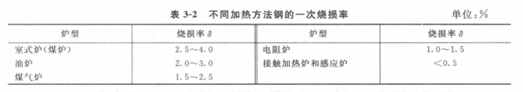 金屬的氧化燒損危害性很大,一般情況下,鋼料每加熱一次便有0.5~4.0%的金屬被氧化燒損掉,如表3-2所示。同時氧化皮還加劇模具的磨損,降低鍛件的表面質量。殘留氧化皮的鍛件,在機械加工時會加快刀具刃口的磨損。因此,減少或消除加熱時金屬的氧化燒損對鍛造生產來說非常重要。